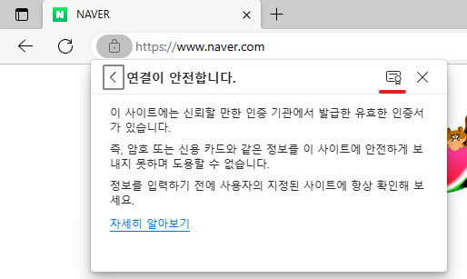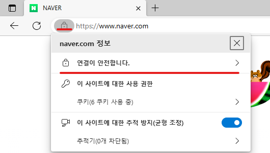 브라우저 상단에 자물쇠 모양을 클릭해 쉽게 확인해 볼 수 있습니다.