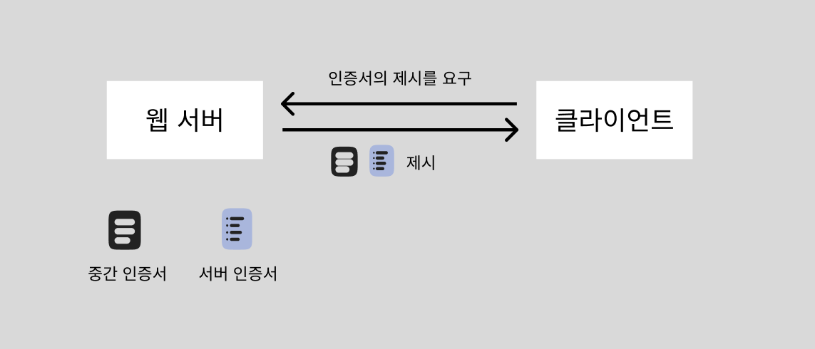 1. 클라이언트가 웹 서버에 인증서의 제시를 요구합니다.